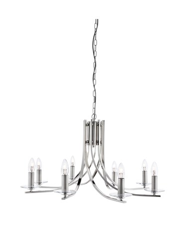 This Ascona satin silver 8 light ceiling fitting with clear glass sconces is a classic design with a modern twist. The satin silver finish is simple, elegant and perfect for your bedroom, living room, or dining room, and the eight clear glass sconces illuminate any room with style and sophistication.