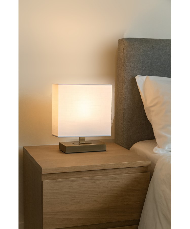 Slimline, versatile table lamp with narrow profile - ideal for narrow shelves and bedsides , fits neatly into corners or flat against the wall. Includes a quality hand finished lampshade. Suitable for use with energy efficient LED bulbs it requires 1 x 20w SES/E14 golf ball bulb (60watt incandescent equivalent) (bulb not included) and with an inline switch for your convenience.