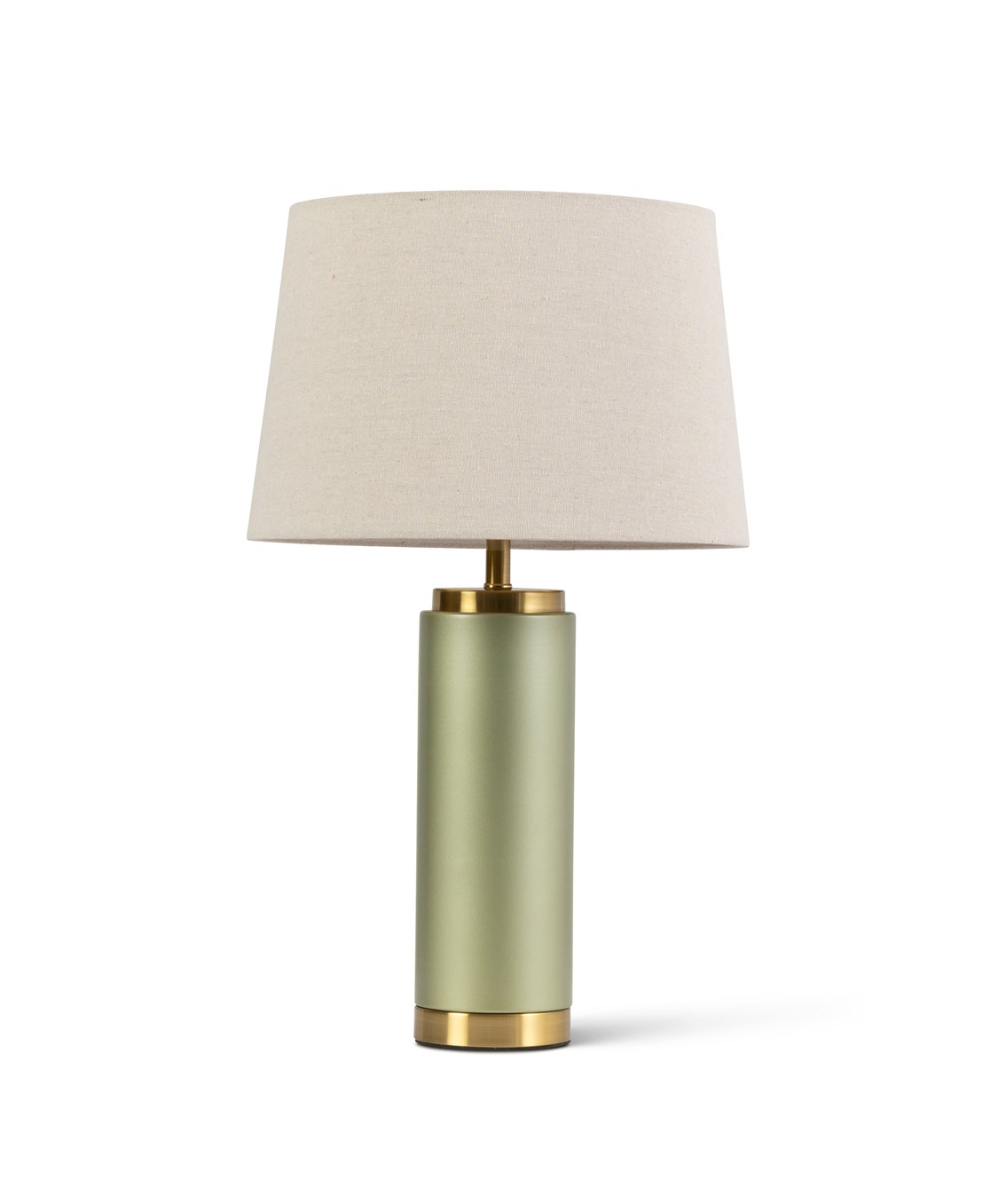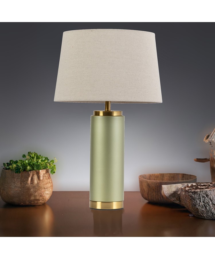 Cylinder Frosted Sage Green / Gold Effect Table Lamp with Natural Shade