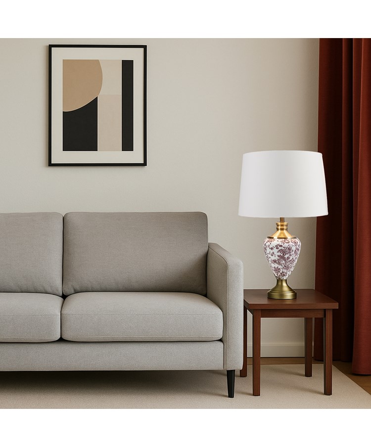 Illuminate any room with this elegant table lamp, perfect for any living space in your home. This lamp works well with modern, contemporary interiors just as well as traditional classic, vintage décor. The ceramic effect is actually glazed onto metal meaning that the lamp is much less likely to break or chip if it is accidentally knocked. Complete with co-ordinated lamp shade