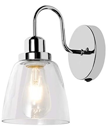 Leeto Modern Mirrored Chrome Switched Wall Light with Glass Shade